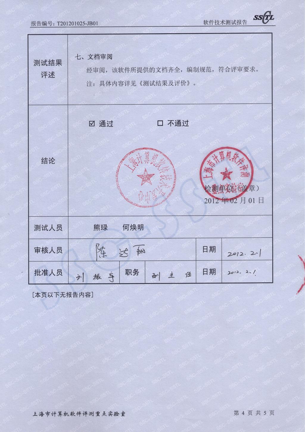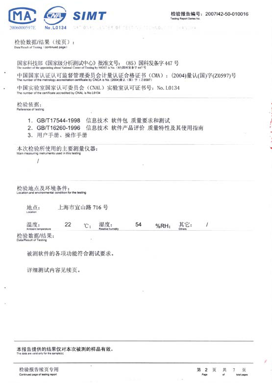 “中國計算機軟件評測重點實驗室”SSC-SSTL檢測報告-01 “中國計算機軟件評測重點實驗室”SSC-SSTL檢測報告-02