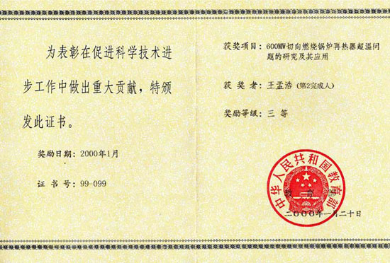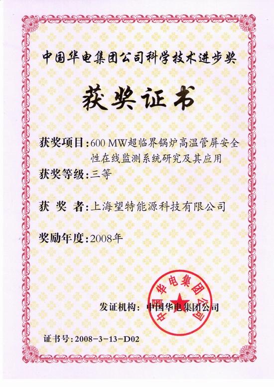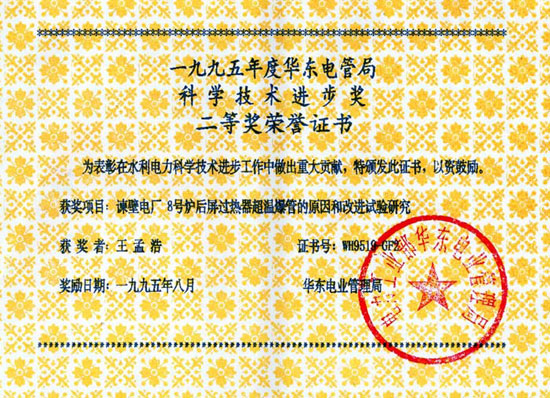 國電諫壁電廠獲獎證書 西安院PSSS性能測試
