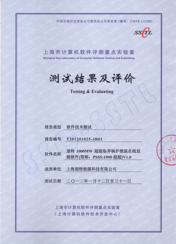 PSSS軟件著作權登記證書 PSSS-3D600 SSC-SSTL技術測試結果及評價